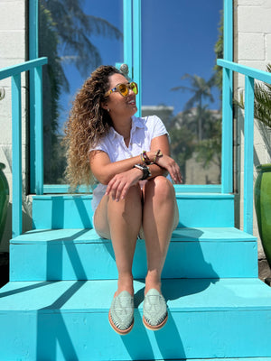 This open-back huarache slide blends traditional Mexican weaving with an effortless slip-on silhouette. The upper is handwoven from supple leather in a soft seafoam tone, reminiscent of sunlit water along the Caribbean. Each strip is carefully interlaced by skilled artisans, creating the signature lattice that allows the leather to breathe, flex, and gradually shape itself to your foot.